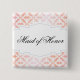 Dieser Quadrat-Trauzeuginknopf kennzeichnet einen Vintagen Blick mit einem verblaßten rosa und korallenroten Hintergrund und einer hellen Damastüberlagerung. Ein weißer Wirbler Rahmen mit einer hellgrauen Grenze kennzeichnet kundengerechten Text.