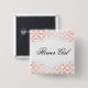 Dieser Quadrat Blumen-Mädchenknopf kennzeichnet einen Vintagen Blick mit einem verblaßten rosa und korallenroten Hintergrund und einer hellen Damastüberlagerung. Ein weißer Wirbler Rahmen mit einer hellgrauen Grenze kennzeichnet kundengerechten Text.