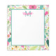 Dieses niedliche Notizblock weist ein hübsches Blumenmuster in Farbtönen, Teppichen, Grüntönen und Gelb auf Weiß auf. Personalisieren Sie das Monogramm mit Ihrer Wahl des Namens und des Initials.