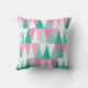 Dieses Kissen hat ein Weihnachtsbaummuster im minimalistischen Stil geometrischer Dreiecke. Das ist die rosa und aquamarine Farbbahn. Sie können das Muster auf diesem Kissen kleiner oder größer machen. Ein niedliches, modernes, gemustertes, weihnachtliches Kissen, das für Ihre aquamarine und rosa Weihnachtsdekoration großartig in Ihrem Haus sein wird.
