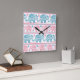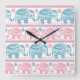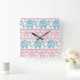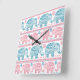 rosa und Aquamarines ethnisches Elefantenmuster Quadratische Wanduhr