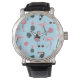 Rosa und Blau Sommer tropisches Muster Armbanduhr