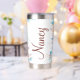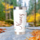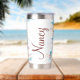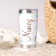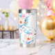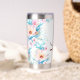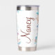 Rosa und blaue Aquarellblumen personalisiert Thermobecher