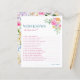 Viel Spaß beim Brautparty/Bachelorette mit diesem coolen Spiel, das hübsche Aquarellblüte und bearbeitbaren Text bietet. Passen Sie es an, wenn nötig, indem Sie auf "Bearbeiten mit dem Design-Tool" klicken.