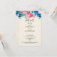 Eine Hochzeitskarte mit einem botanischen Rahmen mit rosa Rosen und Pfannkuchen und blauen Stiefmütterchen. Hintergrund ist ein Pergament-Bild für Imitate. Farblich und hell. Fröhlich und sommerlich.