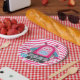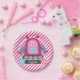 Rosa und blaue Girl Robot; Rosa und weiße Streifen Pappteller