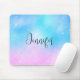 Ein Mauspad mit einem skurrilen Hintergrund. Ein pastellrosa und blaues Farbschema mit Farbverlauf. Kleine weiße Sterne verstreut herum. Whimsikisches und magisches Design.