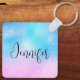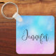 Personalisierter Schlüsselanhänger mit einem skurrilen Hintergrund. Ein pastellrosa und blaues Farbschema mit Farbverlauf. Kleine weiße Sterne verstreut herum. Whimsikisches und magisches Design.