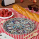 Rosa und blaue Saphire Diamonds Pearls Mandala Pappteller