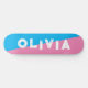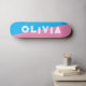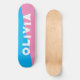 Für ihn, für sie oder für sie ist das einfache rosa und blaue Skateboard Ihr personalisierter Name in einem fetten, funky und grunge bedrückten Buchstaben. Das perfekte abstrakte Design für einen Teenager-Geburtstag oder ein Weihnachtsgeschenk. Schreiben Sie einfach Ihren eigenen Namen für ein individuelles Skateboard.