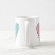 Rosa und blaue Tasse mit handgezeichneten Mustern in Rosa und Blau und symbolisiert ein schönes Paar. Macht ein großartiges Geschenk.