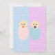 Diese niedliche Einladung ist ideal zum Duschen der Frau mit einem Jungen und einem Mädchen. Der Hintergrund ist in Rosa und Blau gespalten. Es zeigt Cartoon Babys, eins ein Mädchen und eins ein Junge. Sie können den gesamten Text anpassen.