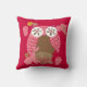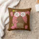 Wenn Sie Liebe Eulen, werden Sie dieses rosa und braun Kissen mit einer Eule mit farbigen Blätter, einem Hasen, Baum, Ecken in Rosa und Braun Liebe!