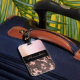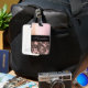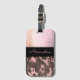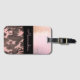 Auf diesem stilvollen Gepäckanhänger befindet sich eine duskyrosa mattierte Glasstruktur, zusammen mit einem schwarzen Band, wo Sie es individuell gestalten können, um es zu Ihrem eigenen und darunter ein rosa und braunes Tarnmuster für Kontrast zu machen. Trendy chic vibes.