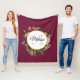 Eine violett-rote Decke mit einem Kreisrahmen mit einem goldenen Rahmen aus Imitat, der auf einem hübschen Blumenstrauß mit Rose, Nelken und anderen Blume verlegt ist. Personalisieren Sie mit Ihrem Namen und Monogramm im Kreis.