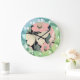Rosa und Creme - Luna Moth und Mondblumen Große Wanduhr
