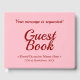 Dieses einfache Event-Gästebuch beinhaltet die Meldungen "Gästebuch" und "Ihre Nachricht wird angefordert!" sowie einen personalisierten Termin-/Veranstaltungsnamen. Der Text ist dunkelrot und der Hintergrund rosa. Ein allgemeines, anpassbares Gästebuch wie dieses könnte vielleicht bei einer Veranstaltung wie einer Wiedersehen, einer Geburtstagsparty, einem Hochzeitstag, einer Hochzeitsfeier, einer Hochzeit oder einem anderen Event mit Gästen verwendet werden, die gewollt haben, eine Nachricht verlassen.