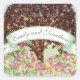 Rosa und gelb bläserbraune Eichenbäume Hochzeitsst Quadratischer Aufkleber