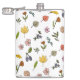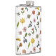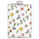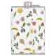 Rosa und gelbe Herbstblumen und Blätter Flachmann