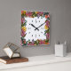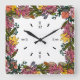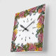 Rosa und gelbe Herbstblumen und Blätter Quadratische Wanduhr