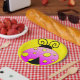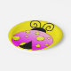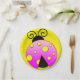 Papier Teller mit einem farbigen rosa und gelben Polka Dot Ladybug auf gelbem Hintergrund.