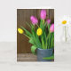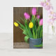 Rosa und gelbe Tulpen in Eimern Karte