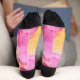 Dieses bunte Sockenpaar zeichnet sich durch ein abstraktes, rosa und gelbes Marmor-Design aus, das mit Tinte und Alkohol geschaffen wurde. Diese hübschen Socken fügen jedem Outfit einen Farbtupfer hinzu.