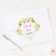 Dieses wunderschöne und elegante Brautparty, das Sie mit einem Aufkleber bedanken, ist in Aquarellfarbe, Rosa, Gelb und Weiß gehalten und mit einem goldenen Rahmen versehen. Der Text kombiniert handgeschriebene Skript- und Serif-Schriftart für ein stilvolles und modernes Aussehen. Das ist ideal für ein rustikales Brautparty im Frühling oder Sommer.