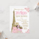 Paris Baby Dusche Einladung mit schönem goldenen Eiffelturm, elegante pink und gold Paris Geschenkpakete, süßes Baby Mädchen mit rosa Outfit und eine Perlenkette, extravagant rosa Paris Drehbuch auf einem hübsch rosa Blumenhintergrund. Diese wunderschöne Pariser Babydusche lässt sich leicht an Ihre Veranstaltung anpassen, indem Sie einfach Ihre Details in den Schriftart-Stil und Farbe und den Wortlaut Ihrer Wahl einfügen. Dies ist ein gedrucktes Design ohne echte Diamanten, Juwelen, Glitzer, etc.