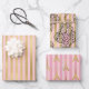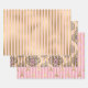 Imitate Folie Vintag Paris Rosa und Gold gemusterte Umhüllung Papier mit Streifen, Trauben und Eiffelturm.