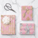 Imitate Folie Vintag Paris Rosa und Gold gemusterte Packpapier mit Rose, Fleur-de-lis und Harlequin Lady Muster.