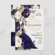 Navy blauen Blumen mit weißen und goldenen Akzenten schafft eine schöne Quinceanera Einladung ohne Foto, aber ein Foto laden in dieser Sammlung ist auch verfügbar. Feminine, elegant, trendig und schön.