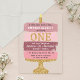 Rosa und goldener Glitzer Kuchen 1. Geburtstag Acryleinladungen