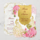 Rosa und goldener Pfauenlotus Indische Hochzeit Einladung