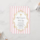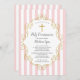 Erste heilige Kommunion Einladung mit einem rosa-weißen Streifen Hintergrund mit einem goldenen Kreuz & Rahmen für eine Mädchengemeinde.