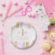 Rosa und goldener Regenbogen 1. Geburtstag Party Pappteller
