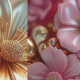 Rosa und goldfarbene Blütenschale und -halterung Tapete