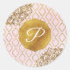 Rosa und goldmarokkanische Glam Monogram Gastgesch Runder Aufkleber