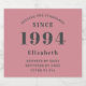 Personalisierte Weinetiketten entwerfen für diese Geburtstagsfeier für eine besondere Person, die 1994 geboren und 30 Jahre alt wurde. Fügen Sie den Namen und die einzigartige Nachricht zu diesem Vintagen Retro-Stil rosa und grau Design für ein maßgeschneidertes 30. Geburtstagsgeschenk. Bearbeiten Sie den Namen und das Jahr einfach mit der Vorlage. Ein wunderbares Geschenk zum Geburtstag. Mehr Geschenke und Party-Vorräte für das 30. Party-Fest im Laden verfügbar.