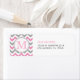 Personalisierte Bubblegum Rosa und Grau Moderne Zickzack Rücksendeadressen-Aufkleber mit Monogram.