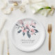 Hochzeitspapier-Teller mit einer hübschen Aquarellabbildungen von rosa Blume mit grauen Blätter auf einem Single-Stiel. Ein modernes, elegantes botanisches Design.