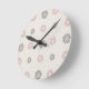 Rosa und graue Blume Runde Wanduhr