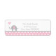 Verwenden Sie dieses süß-rosa und graue Elefantenrücksendetikett, um Ihre Party Einladungen zu senden oder Dankeschön-Notizen.