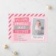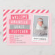 Erschwingliche, individuell bedruckte Fotokarten für die Geburtshilfe. Dieses moderne Design besticht durch einen handgefertigten Scrapbook-Stil mit einem niedlichen Sofortbild-Foto in Rosa und Grau. Personalisieren Sie es mit Babynamen und Geburtsdaten und Ihrem neugeborenen Foto. Die Rückseite hat ein Streifen-Muster, das Sie anpassen können, indem Sie den Hintergrund in eine beliebige Farbe ändern. Verwenden Sie die Rückseite, um bei Bedarf zusätzliche Fotos und Texte hinzuzufügen. Klicken Sie auf Anpassen, um weitere Fotos hinzuzufügen und Schriftart und Farben für Texte zu erstellen, um eine einmalige Geburtsankündigung für Ihr neues Kindermädchen zu erstellen.