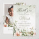 Rosa und grüne Blume Taufe Foto Dankeskarte