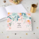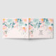 Ein Gästebuch mit elegantem Blumenrahmen. Blume und Blätter in Rosa und Grün.