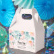 Eine winzige Gefälligkeitsbox mit eleganter Blumenrahmen. Blume und Blätter in Rosa und Grün.