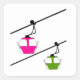 Rosa und grüne Gondeln mit Ski Quadratischer Aufkleber
