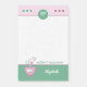 Personalisieren Sie diese Post, die es notiert, mit einem Namen und Initialen - Monogramm. Entworfen in Rosa und Grün, mit einer Kaffeetasse. "Kaffee = Glück"