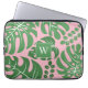 Rosa und grüne Mit Monogramm Monstera-Blätter Laptopschutzhülle